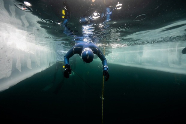 Многократный чемпион мира по фридайвингу Алексей Молчанов нырнул на глубину 50 метров. Рекорд спортсмена на Байкале — 90 метров в моноласте. Соревнования продлятся до 21 марта.