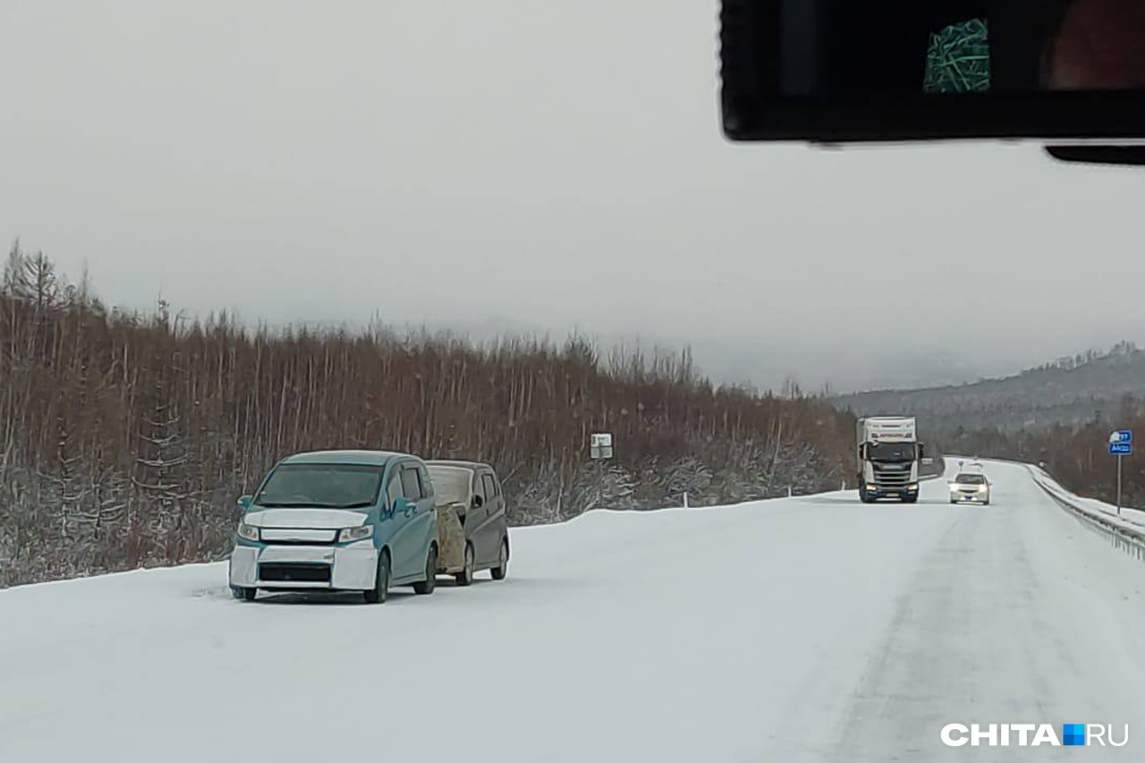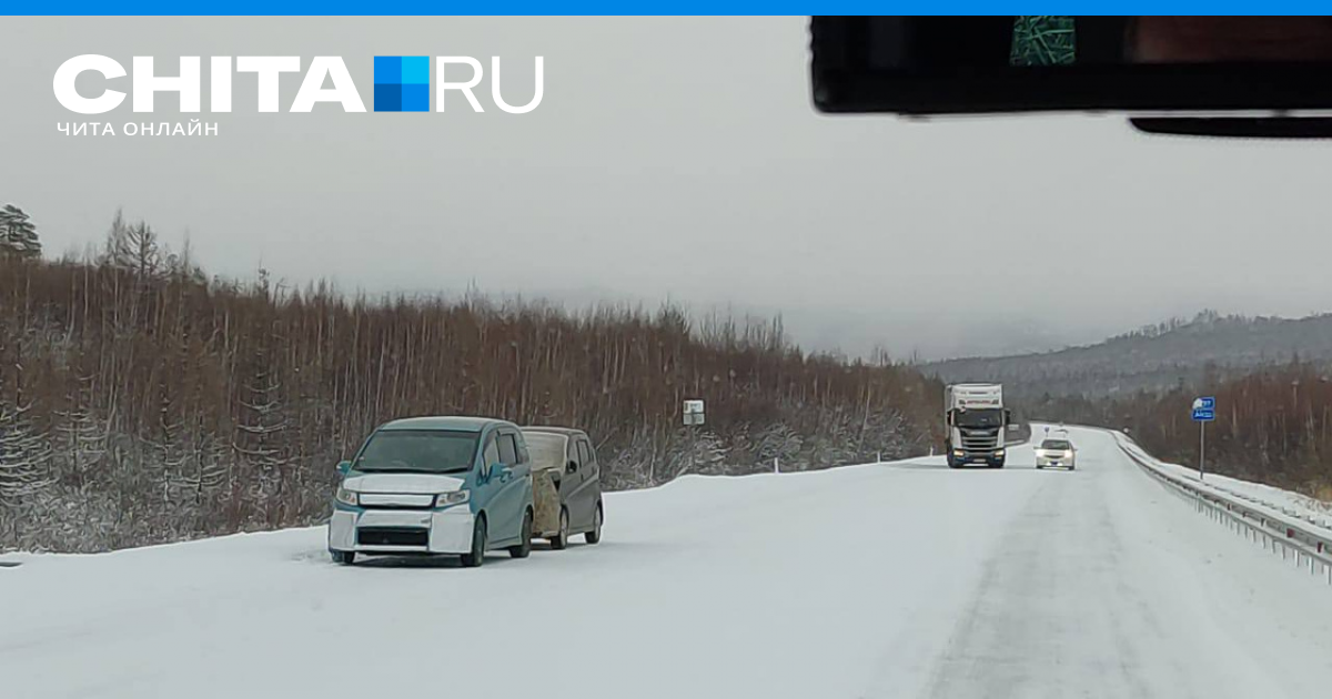 Три большегруза из-за выпавшего снега встали на хребте возле станции Зилово в Могочинском районе Забайкальского края и не могут подняться в гору, одна из машин скатилась на встречную полосу. Об этом