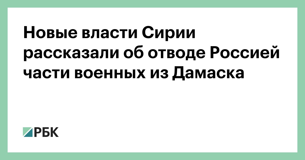 Россия в последние дни вывела не менее 400 военных из района Дамаска, их перебросили на авиабазу Хмеймим в координации с новыми властями Сирии. Об этом в интервью Financial Times (FT) заявил член политбюро пришедшей к власти группировки «Хайат Тахрир аш-Шам» (ХТШ; признана террористической и запрещена в России) Камаль Лабабиди, который участвовал в соответствующих переговорах с сирийской стороны.