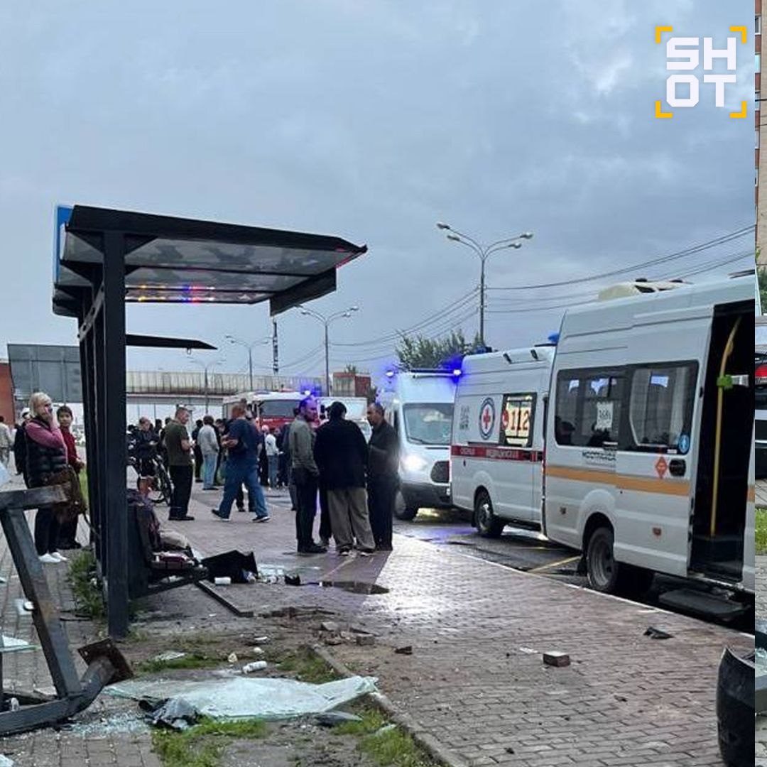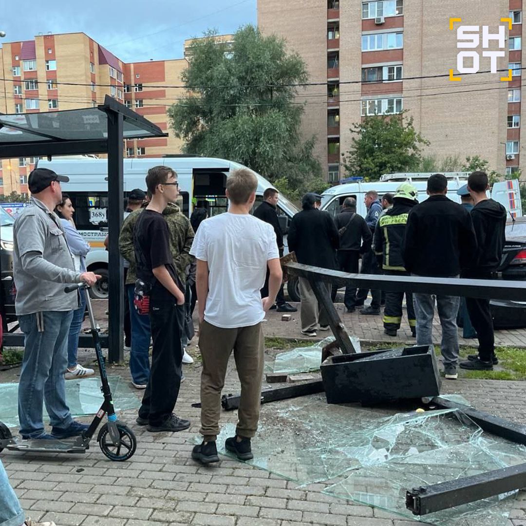 Легковушка протаранила остановку и снесла людей в подмосковном Долгопрудном.