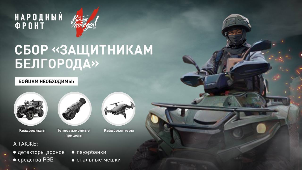 Народный фронт открыл сбор «Защитникам Белгорода» – парни бьются на нашей земле, защищают мирных граждан. Им нужны коптеры, средства РЭБ, прицелы и многое другое.