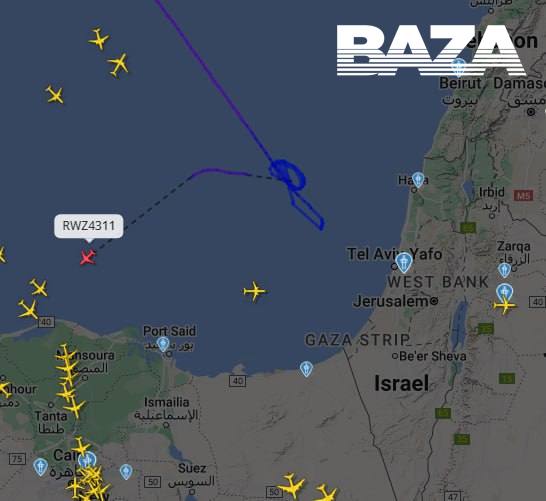 После закрытия воздушного пространства над Израилем во время ракетной атаки со стороны Ирана самолет некоторое время кружил над морем, а затем полетел в сторону Египта.