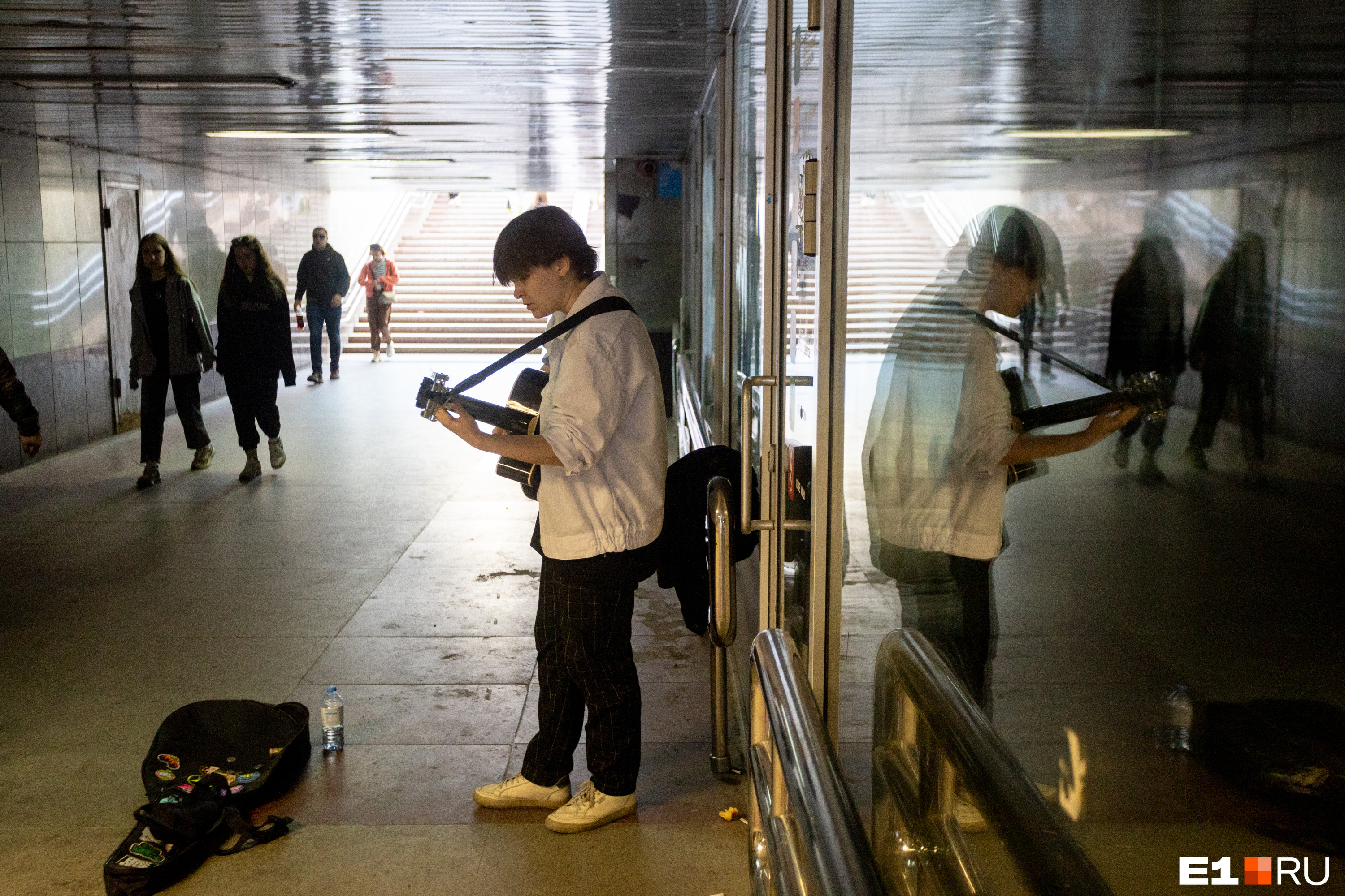 Поиски уличных музыкантов мы начинаем с прогулки по улице Вайнера. Послушать мини-концерты там можно практически каждый вечер. В подземном переходе на перекрестке с улицей Малышева встречаем Яна с гитарой. Парень рассказывает, что с детства умеет играть на разных инструментах.