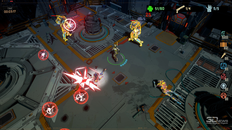 Все это многообразие раскрывается постепенно. В новых опциях интересно копаться, искать синергию и подбирать под свой вкус. Стрельба и размахивание увесистой дубиной одинаково эффективны, но вы можете выбрать предпочитаемый стиль и сфокусироваться на нем, превратив игру или в слешер, или в твин-стик шутер.