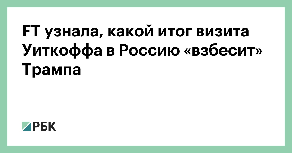 Президент США Дональд Трамп придет в ярость, если его спецпосланник Стив Уиткофф вернется из Москвы после встреч с руководством России без результата. Об этом сообщила Financial Times (FT) со ссылкой на источник, близкий к администрации американского президента.