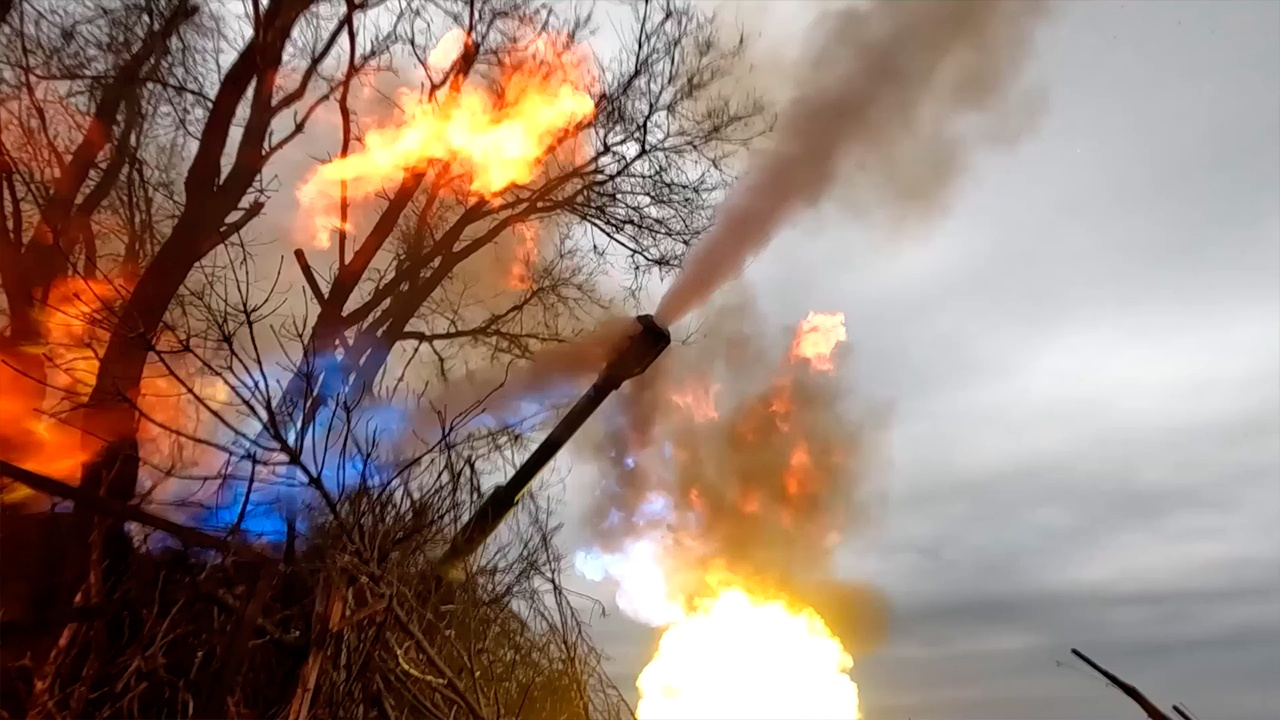 Расчет самоходной артиллерийской установки 2С19 «Мста-С» 400-го самоходного артиллерийского полка группировки войск «Центр» поразил корректируемым боеприпасом «Краснополь-М2» пункт управления беспилотниками ВСУ в районе Димитрова в ДНР, сообщили в Минобороны России.