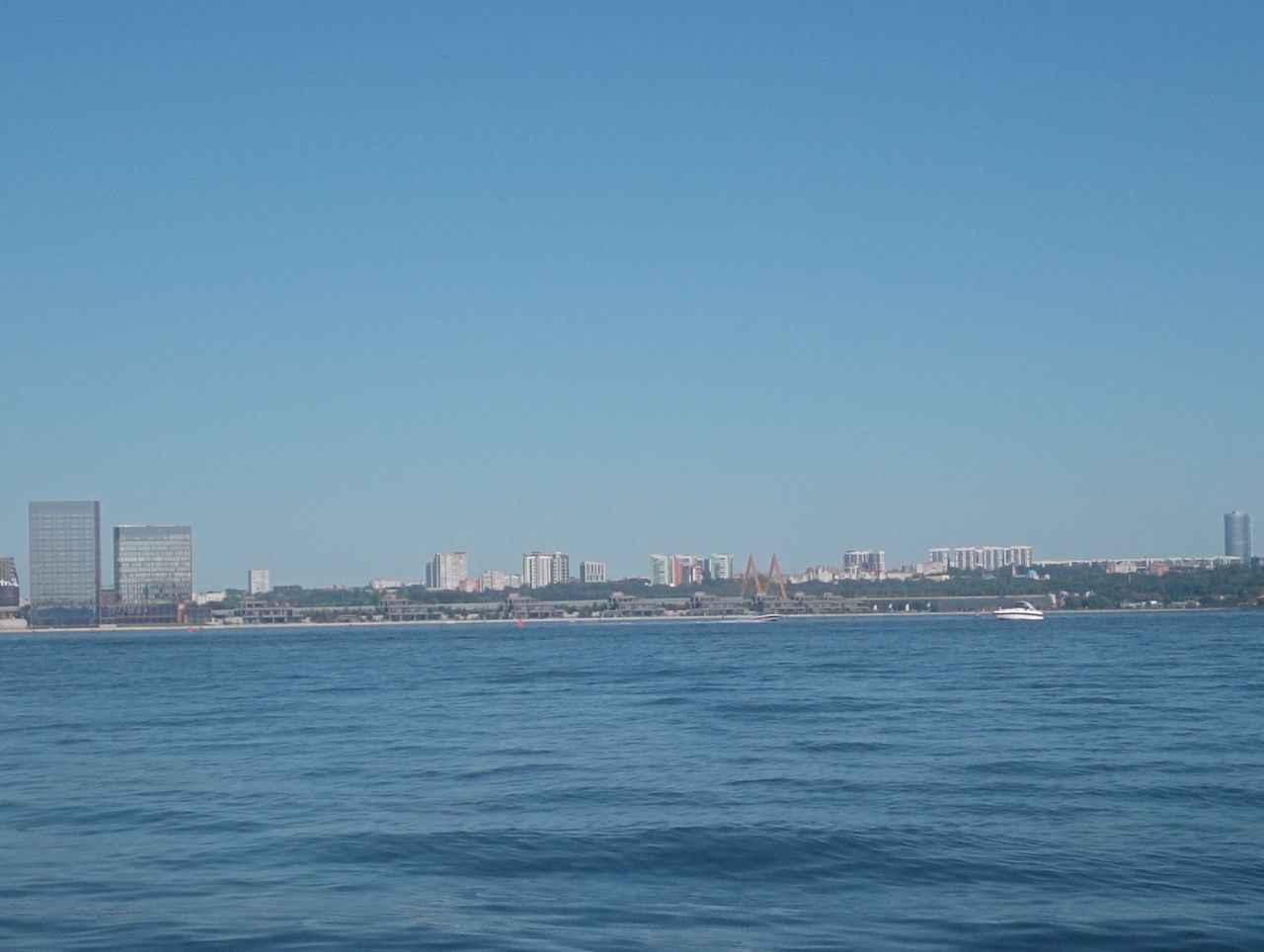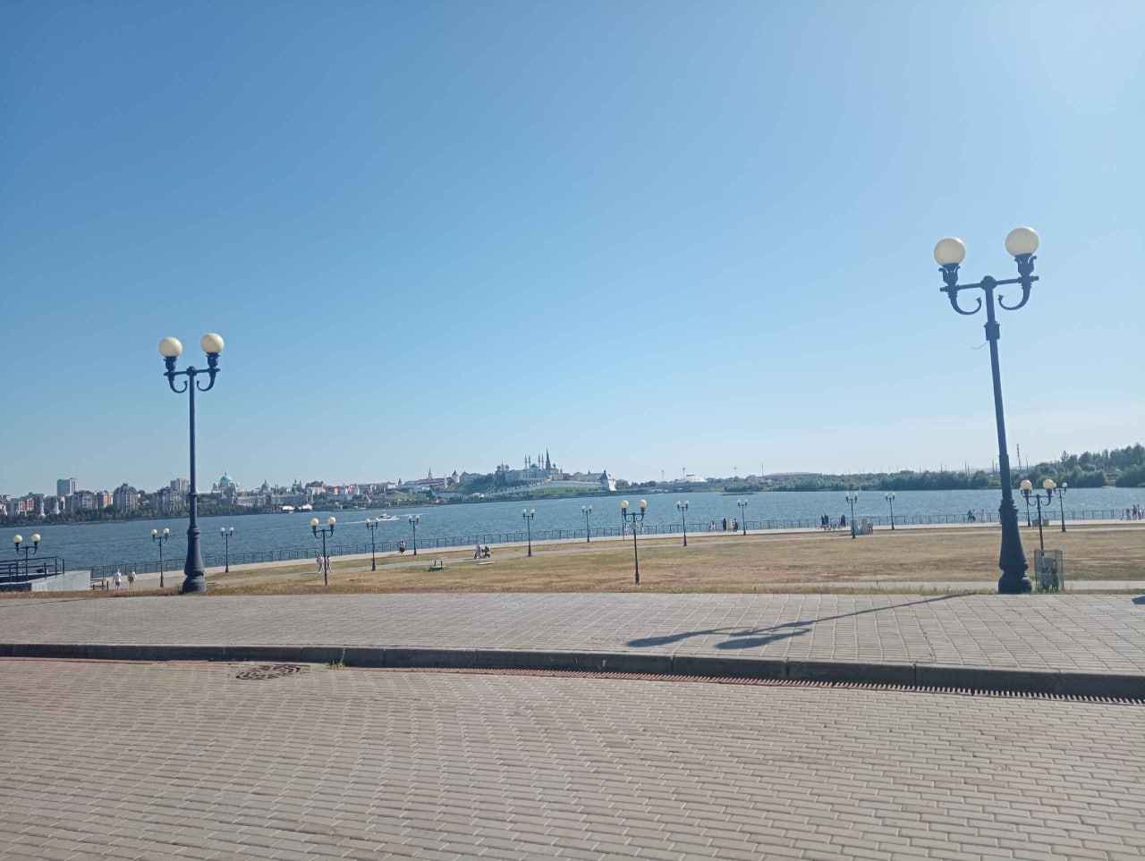 Но всё это лишь показуха. Ведь моря нет! Доходим до Набережной – и вот оно. Ан нет! Это просто река Казанка впадает в Волгу. И место их слияния настолько широко, что доходит до горизонта.
