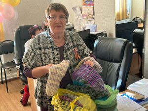 Также секретарём первичного отделения Местного отделения Партии «ЕДИНАЯ РОССИЯ», руководителем «Серебряных добровольцев» Светланой ЖИГАЛИНОЙ была подготовлена и отправлена в госпиталь большая партия специальных тёплых носков для ампутированных конечностей, которые своими руками связали «Серебряные добровольцы».