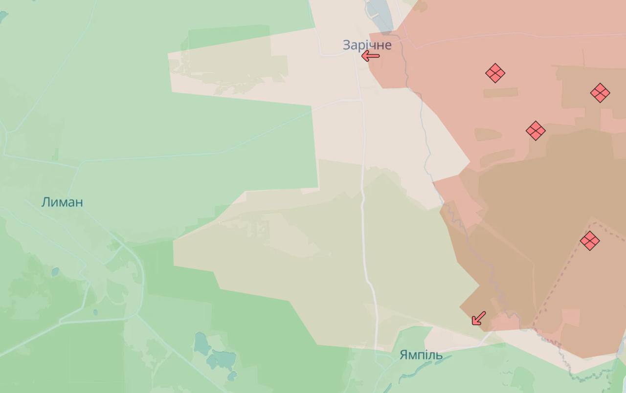По данным украинского военного проекта Deep State, российская армия продолжает наращивать силы в лесных массивах между Ямполем, Лиманом и Заречным, постепенно просачиваясь между позициями ВСУ.