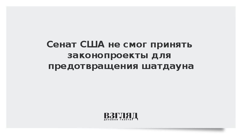 По итогам голосования в Сенате ни один из законопроектов, способных предотвратить шатдаун, не набрал необходимых 60 голосов, передает ТАСС. Законопроект республиканцев, ранее одобренный Палатой представителей, получил поддержку 55 сенаторов, против него выступили 45. Альтернативный вариант, предложенный демократами, получил 47 голосов «за» и 53 «против».