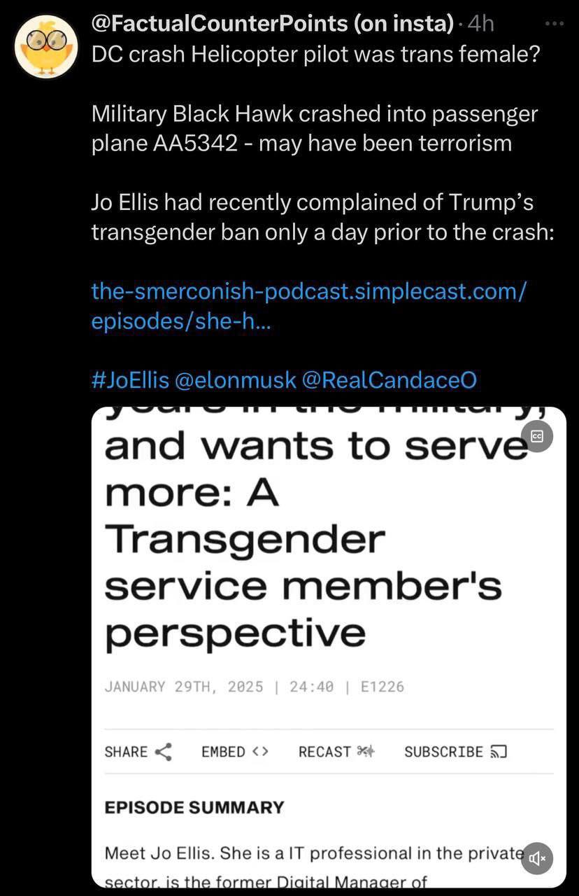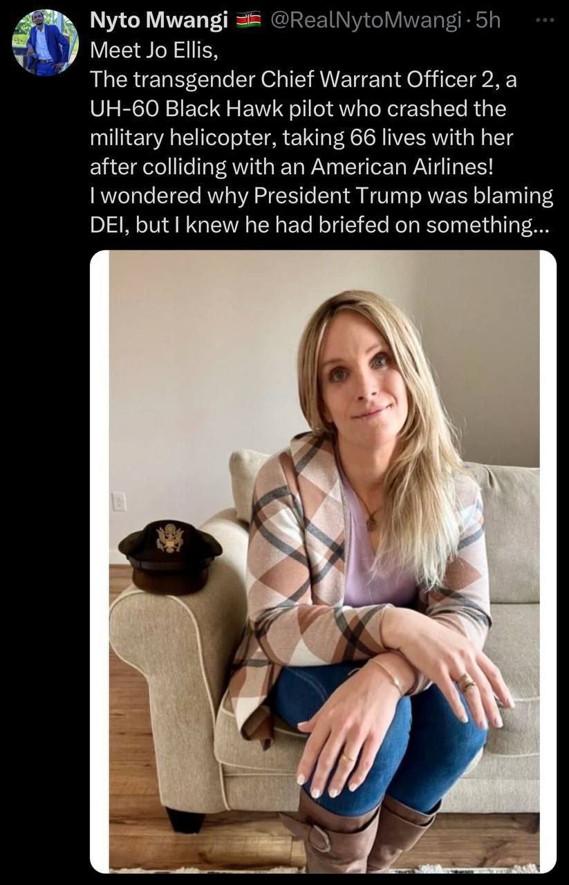 Охренеть. Но вроде бы транс Джо Эллис был пилотом-стажером, управлявшим Blackhawk, который стал причиной вчерашней катастрофы.
