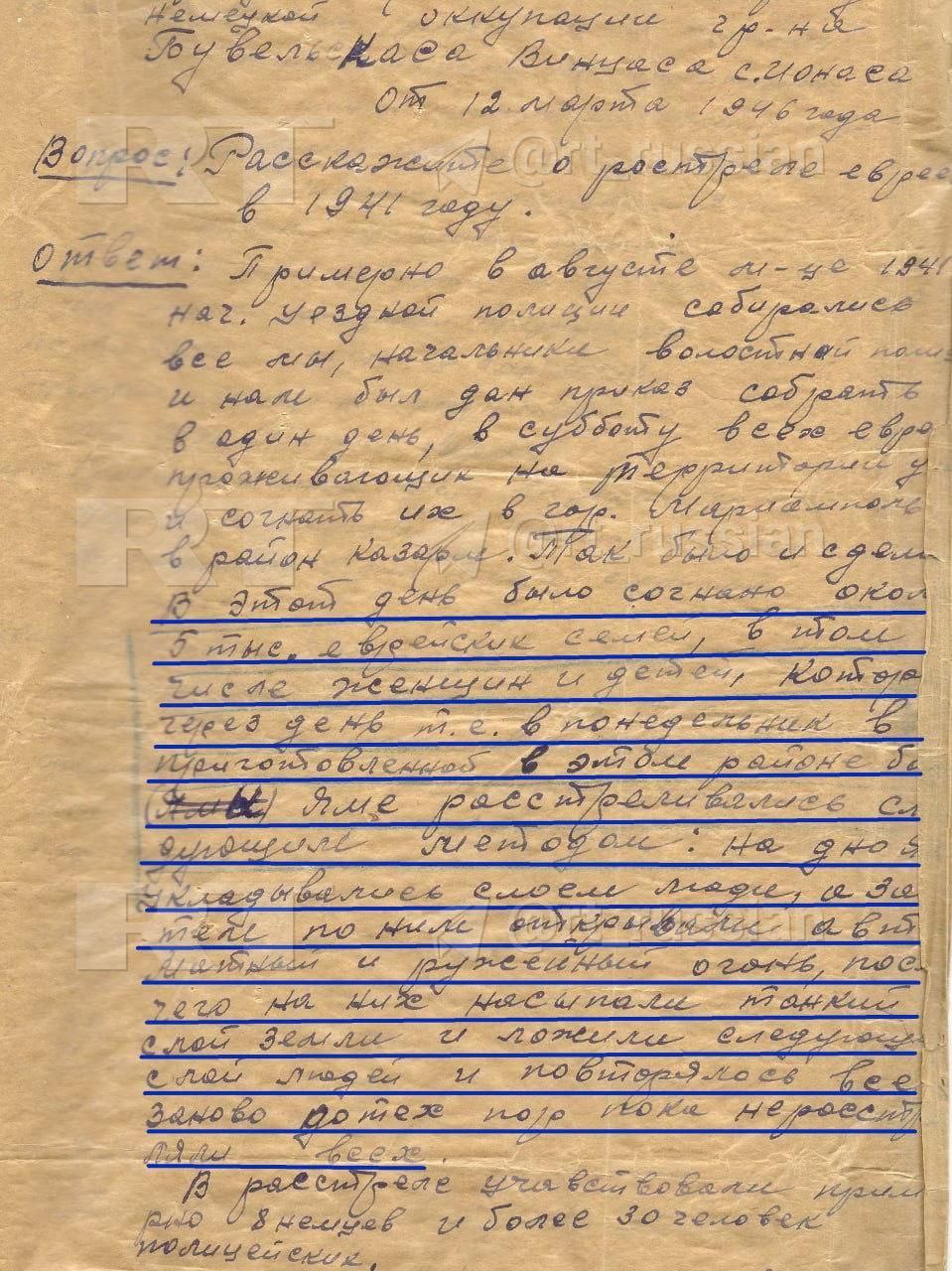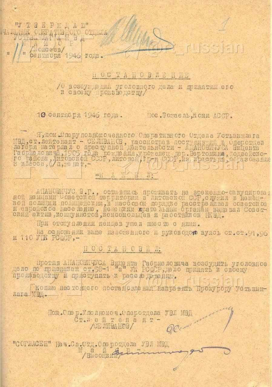 Опасаясь, что о его преступлениях узнают, в августе 1943-го Апановичус вместе с немцами эвакуировался в Германию. Менее чем через два года его всё же задержали сотрудники Смерша. Вот что он рассказывал в своих показаниях: