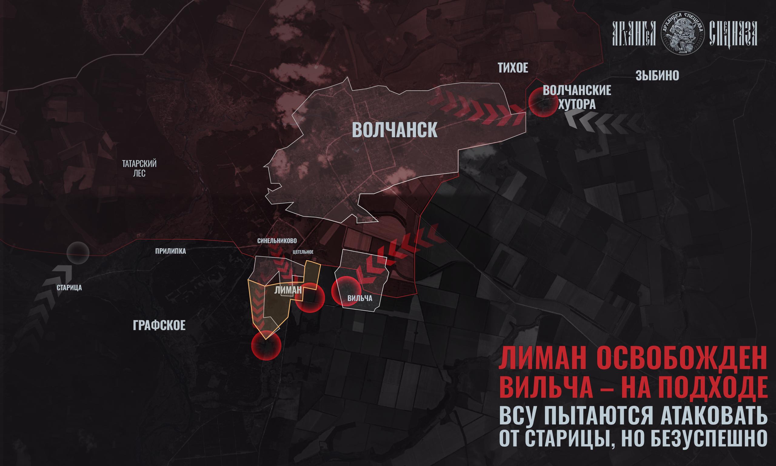 Возникает вопрос: а что после Лимана? На подходе Вильча, где штурмовые группы уже контролируют большую часть села. ВСУ в лице 57 ОМПБр огрызаются с юга.
