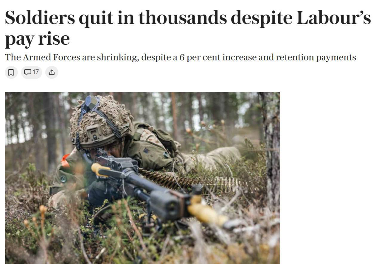 🔹Британские солдаты увольняются из Вооруженных сил тысячами, несмотря на повышение зарплаты.