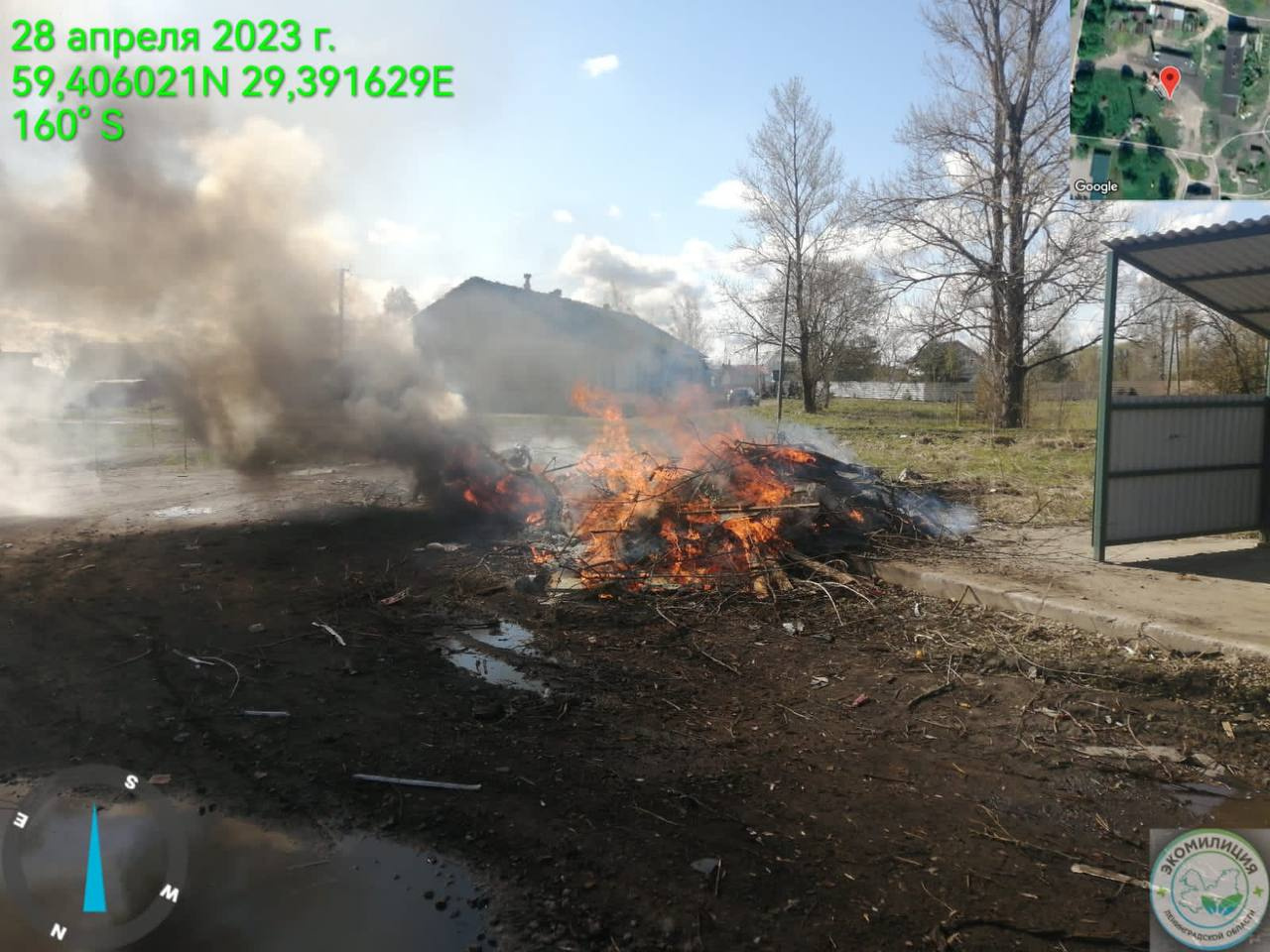 Администрации в деревне Рабитицы Волосовского района Ленобласти сжигала мусор, накопленный возле площадки ТКО. Экополицейского они проигнорировали, незаметить пожарную машину было сложнее.