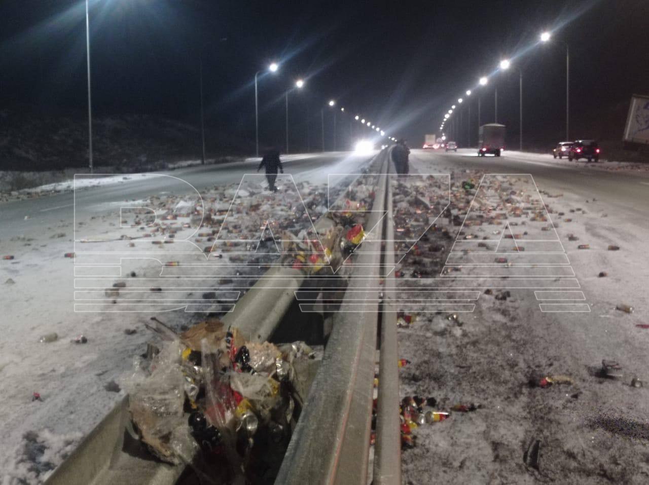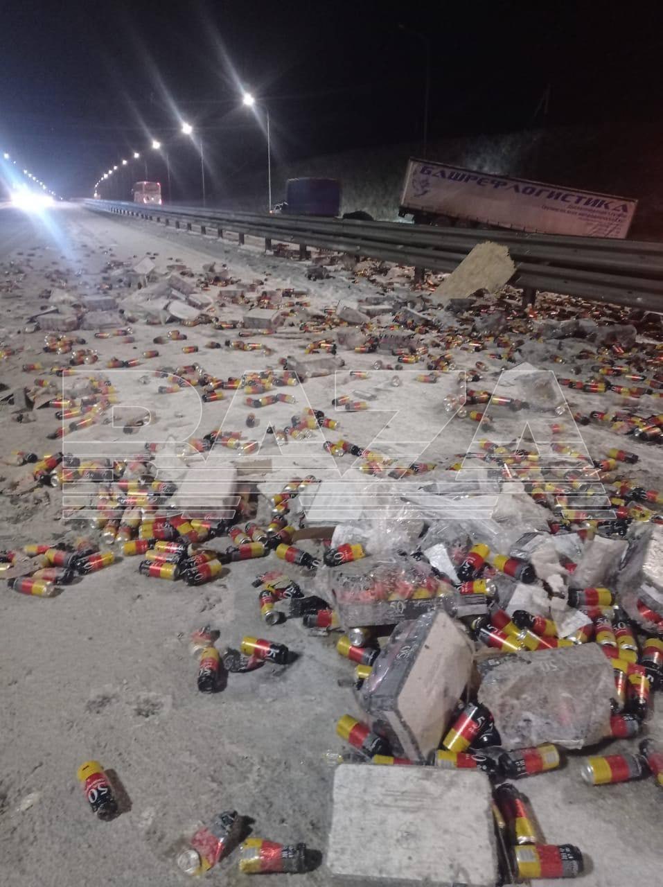 Полиция разыскивает жителей Башкирии, которые набрали пива после аварии фуры — банки раскидало по дороге, народ не смог удержаться.