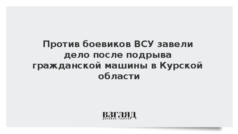 Следователи возбудили уголовное дело по факту убийства и теракта в отношении украинских боевиков, которые подорвали легковой автомобиль с людьми в Курской области, сообщили в военных следственных органов СК России.