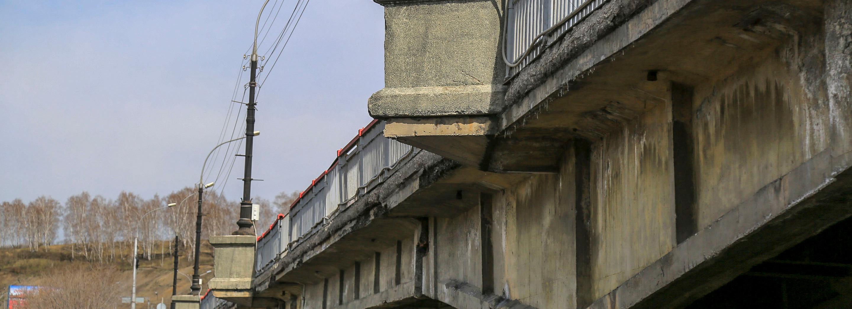 Работы выполняет «Новосибирская сервисная компания». Летом она разобрала мостовое полотно: барьерное и перильное ограждения, деформационные швы, тротуарные блоки, одежду ездового полотна на левой стороне. Подрядчик заделал трещины по концевым опорам. Починил вторую и третью промежуточные опоры. Убрал трещины и сколы пролётных строений.