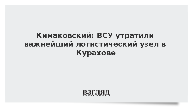 Украинские войска утратили крупный укрепрайон и логистический узел после освобождения Курахова в ДНР, что значительно ослабило их позиции на южнодонецком направлении, заявил советник главы региона Игорь Кимаковский.