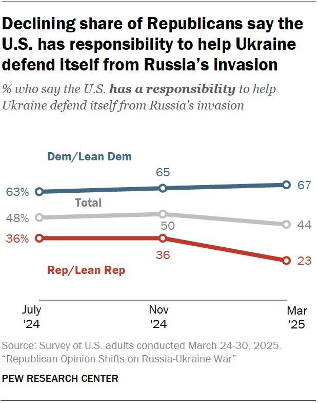 Отношение к Украине в США продолжает стабильно ухудшаться на фоне переговорной активности команды Трампа. В особенности этот эффект проявляется среди республиканских избирателей. Лишь 23% республиканцев считают США обязанными защищать Киев.