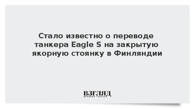 Задержанный танкер Eagle S будет перемещен на закрытую якорную стоянку Свартбек, расположенную недалеко от порта Килпилахти в Порвоо, сообщает «Интерфакс». Перемещение судна связано с арестом, наложенным Национальным бюро расследований Финляндии. На время перевода досудебное расследование будет приостановлено.