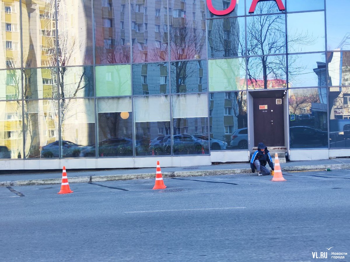 Как сообщают корреспонденты Новостей VL.ru, сегодня днём белые линии закрашивали краской. Рабочий с помощью валика и чёрной краски устранил дорожную коллизию, и теперь состояние асфальта соответствует висящим рядом дорожным знакам.