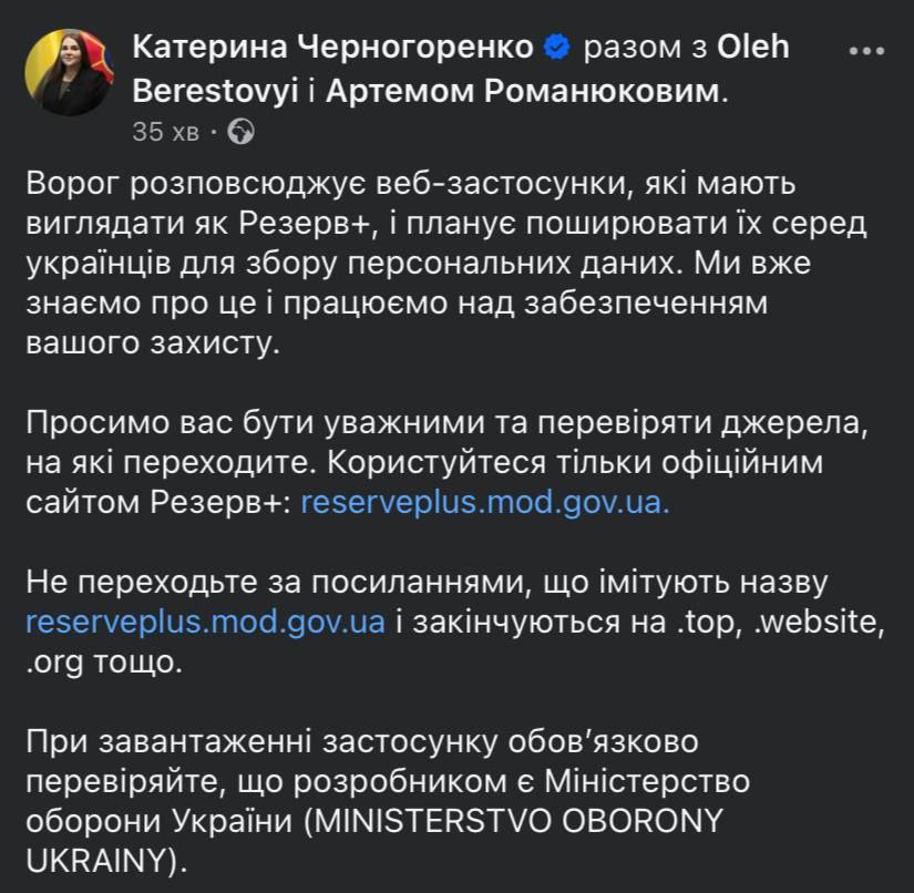 По ее словам, его запустила РФ с целью сбора персональных данных украинцев.