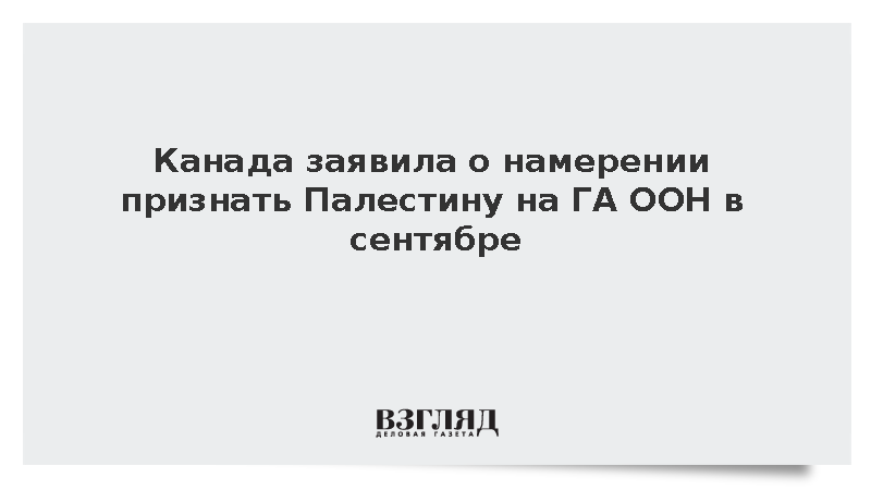 На 80-й сессии Генассамблеи ООН в сентябре Канада намерена признать Палестину как государство, о чем заявил премьер-министр страны Марк Карни.