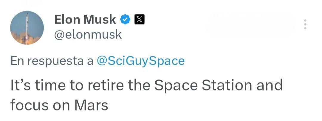 Илон Маск написал, что Международную космическую станцию пора списывать, а приоритеты человечества стоит перенести на исследование Марса. По словам предпринимателя, нынешняя орбитальная инфраструктура устарела, а будущее – за дальним космосом.