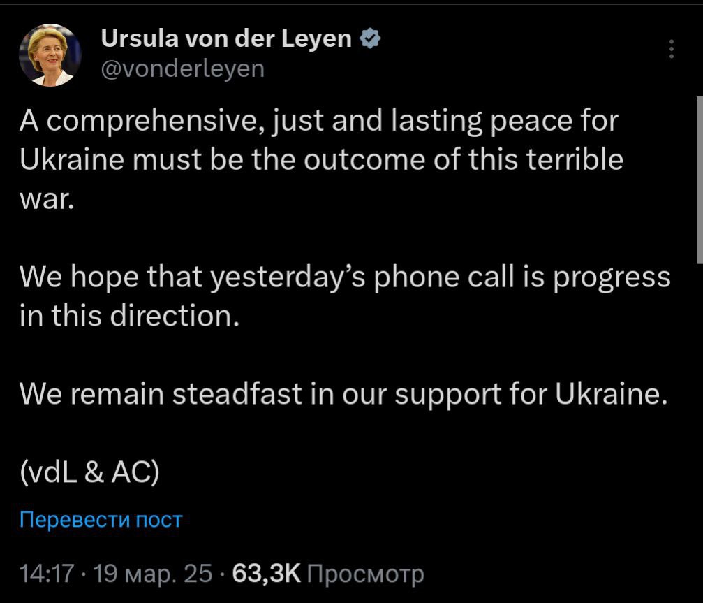 Европейская ведьма Урсула фон дер Ляйен продолжает биться как рыба об лёд и упорно забрасывает местную публику бессмысленными заявлениями о поддержке Украины.