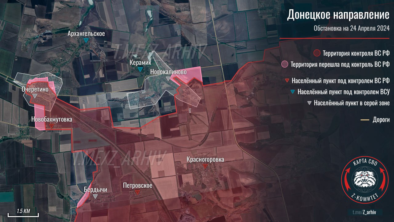 ВС РФ продвигаются на северном фланге Авдеевки, расширяя "Очеретинский клин" и начиная охват Новокалиново.