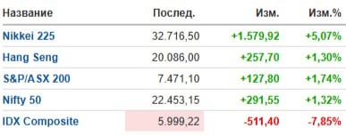 "Индексы Азиатско-Тихоокеанского региона растут на 1–5%. Сильнее всего прибавляет японский Nikkei 225 — плюс 5,07%, до 32 716,5 пункта", — подчёркивает издание.
