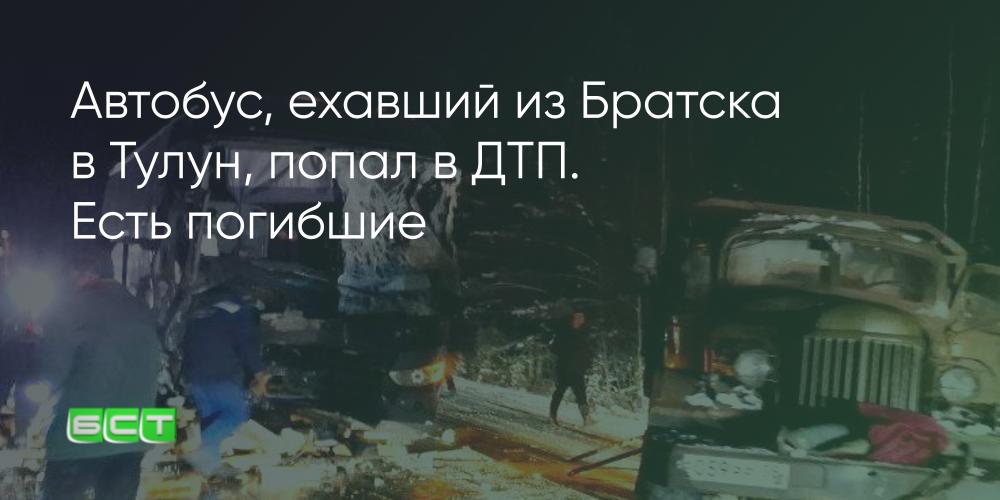 Автобус, следовавший из Братска в Тулун, попал в ДТП. В 20 километрах от села Покосное он врезался в грузовик, стоявший на обочине. Об этом сообщает Братская студия телевидения со ссылкой на телеграм-канал мэра Братска. Александр Дубровин написал, что есть пострадавшие и погибшие.