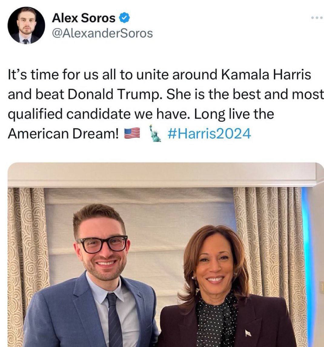 Наследник Джорджа Сороса горячо поддержал Камалу Харрис.