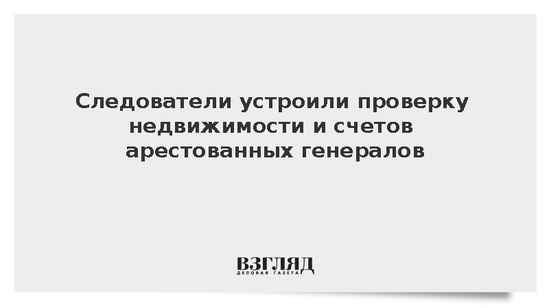 Проводится проверка недвижимости, банковских счетов и других активов арестованных за коррупцию генералов Минобороны, если имущество было приобретено на неподтвержденные доходы, его обратят в доход государства, сообщили в правоохранительных органах.
