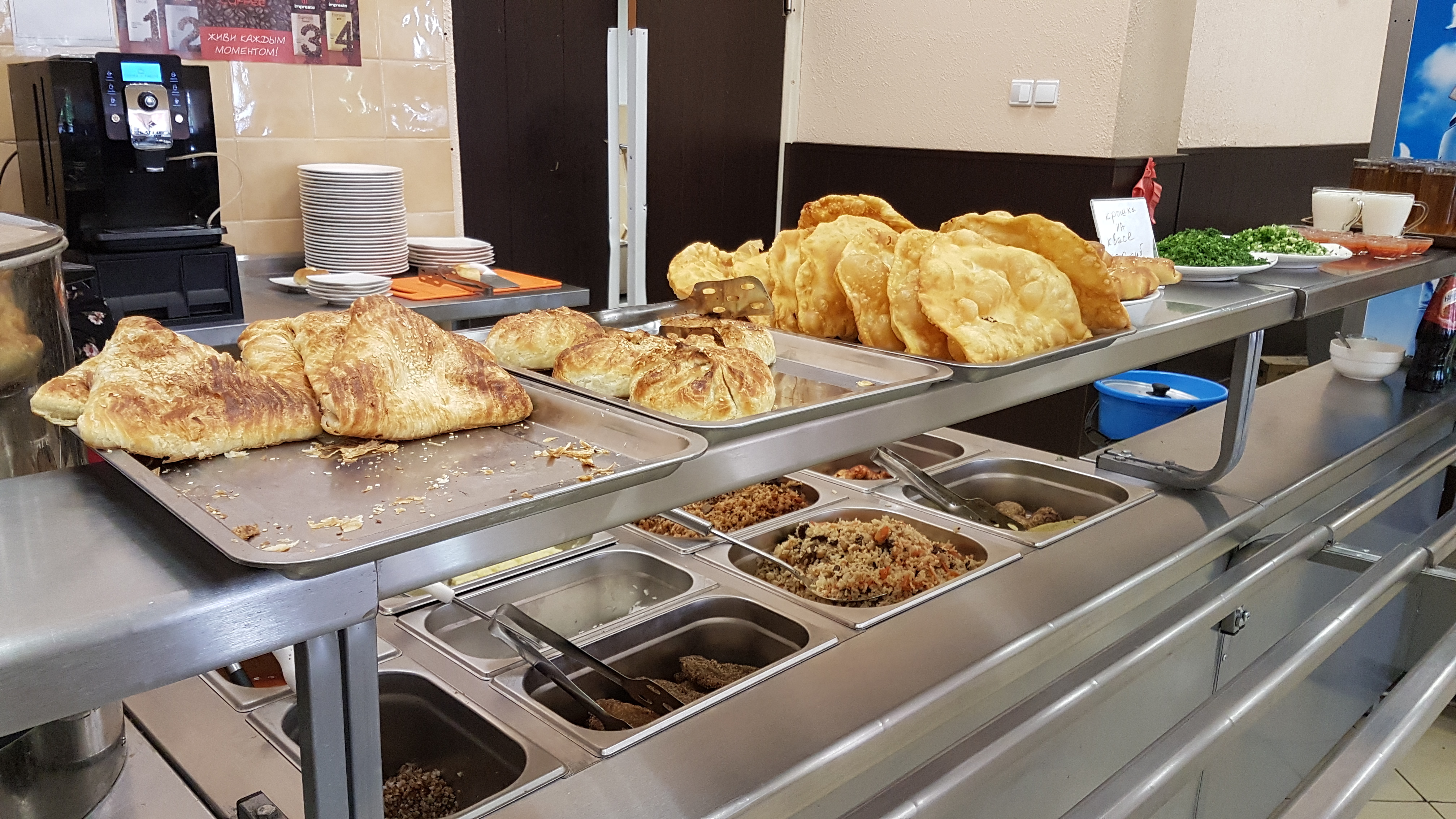 Рай для голодных мужчин. Большие порции, жирная, сытная еда. Дешево. Не стоит стараться заказать 2 блюда, — рискуете не съесть. Впрочем, суп можно попросить полпорции, здесь это тоже принято. В жаркий летний день (мы всё еще в надежде) здесь кушать странно, зато зимой будет просто отлично. Такая еда хорошо согревает. Можно кушать по бизнес-ланчу, — предложение за 200 рублей вывешено на стене, но мы не воспользовались, потому что остальные блюда стоят примерно столько же или дешевле. Можно попробовать лагман за 180 рублей порция, можно плов за 150. Потом чайник свежезаваренного узбекского чая за 30 рублей, — и хочется в люлю. Держат кафе носители этой же среднеазиатской кухни, поэтому всё восхитительно вкусно. Но не на каждый день.