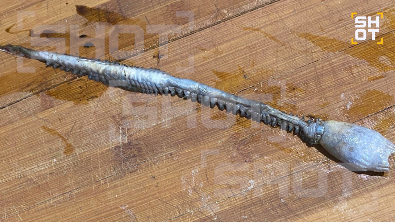 Как стало известно SHOT, магаданские рыболовы, у которых сейчас очень активный сезон, разделывая камбалу, выловленную в Охотском море, нашли внутри одной из рыбин непонятное жуткое существо.
