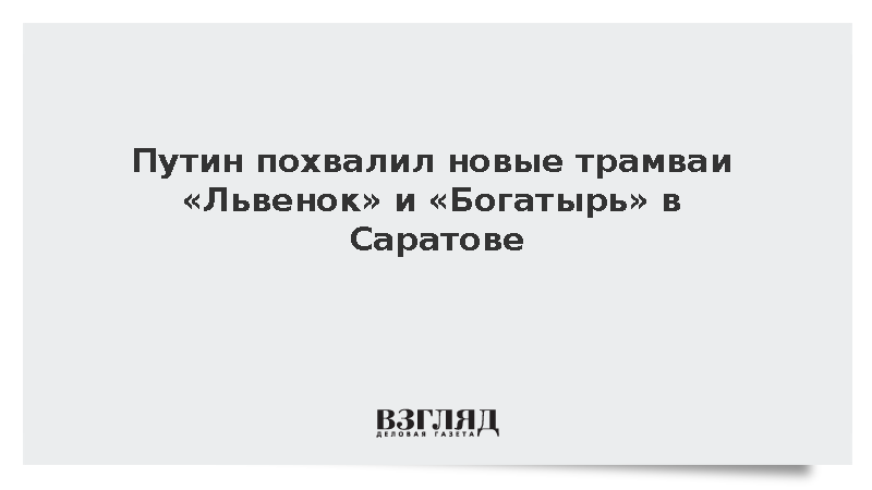 Президент России Владимир Путин высоко оценил новые трамваи, поступившие в Саратовскую область, передает ТАСС.