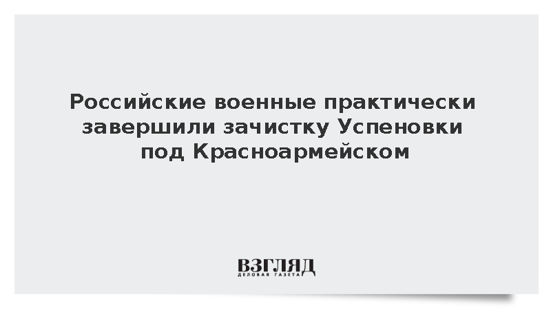 Село Успеновка, расположенное к западу от Красноармейска, практически полностью зачищено от Вооруженных сил Украины, подтвердили представители силовых структур ТАСС.