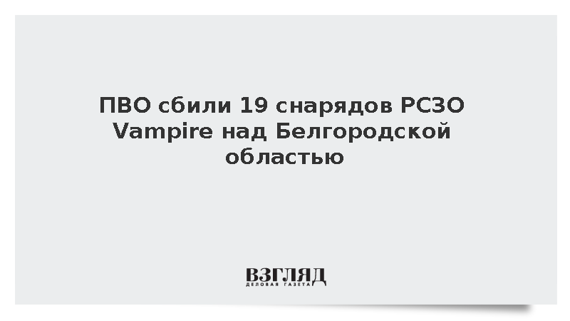 Ранее сообщалось, что ПВО уничтожила 11 снарядов РСЗО Vampire над Белгородской областью.