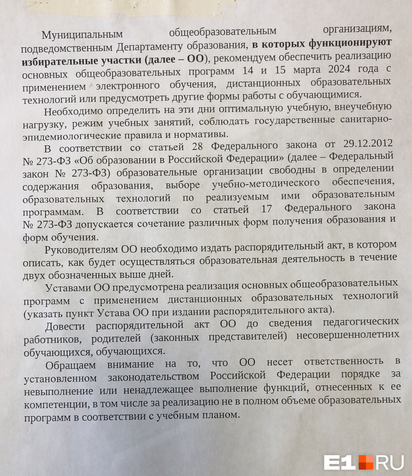 Директорам поручили издать акт, в котором будет описано, как школа работает в предвыборные дни, и сообщить о решении родителям, ученикам и детям. При этом каждая школа — самостоятельная организация, поэтому департамент образования может только давать рекомендации.