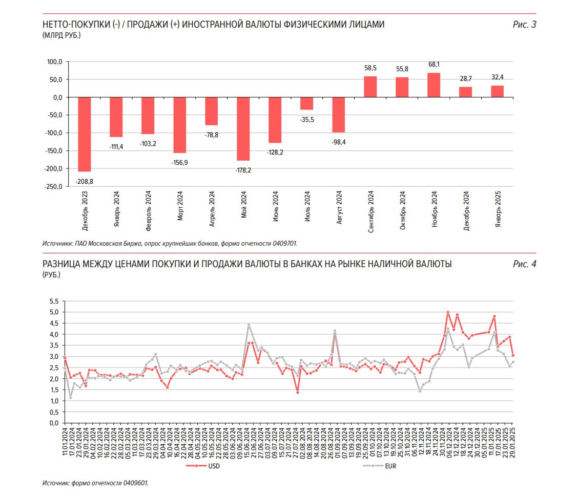 Население в значительной степени компенсирует (закрывая больше половины) разрыва по продаже валюты крупнейшими экспортерами, который до декабря составлял $3-4 млрд, поэтому ослабление рубля в 2024 менее выраженное, чем в 2023.