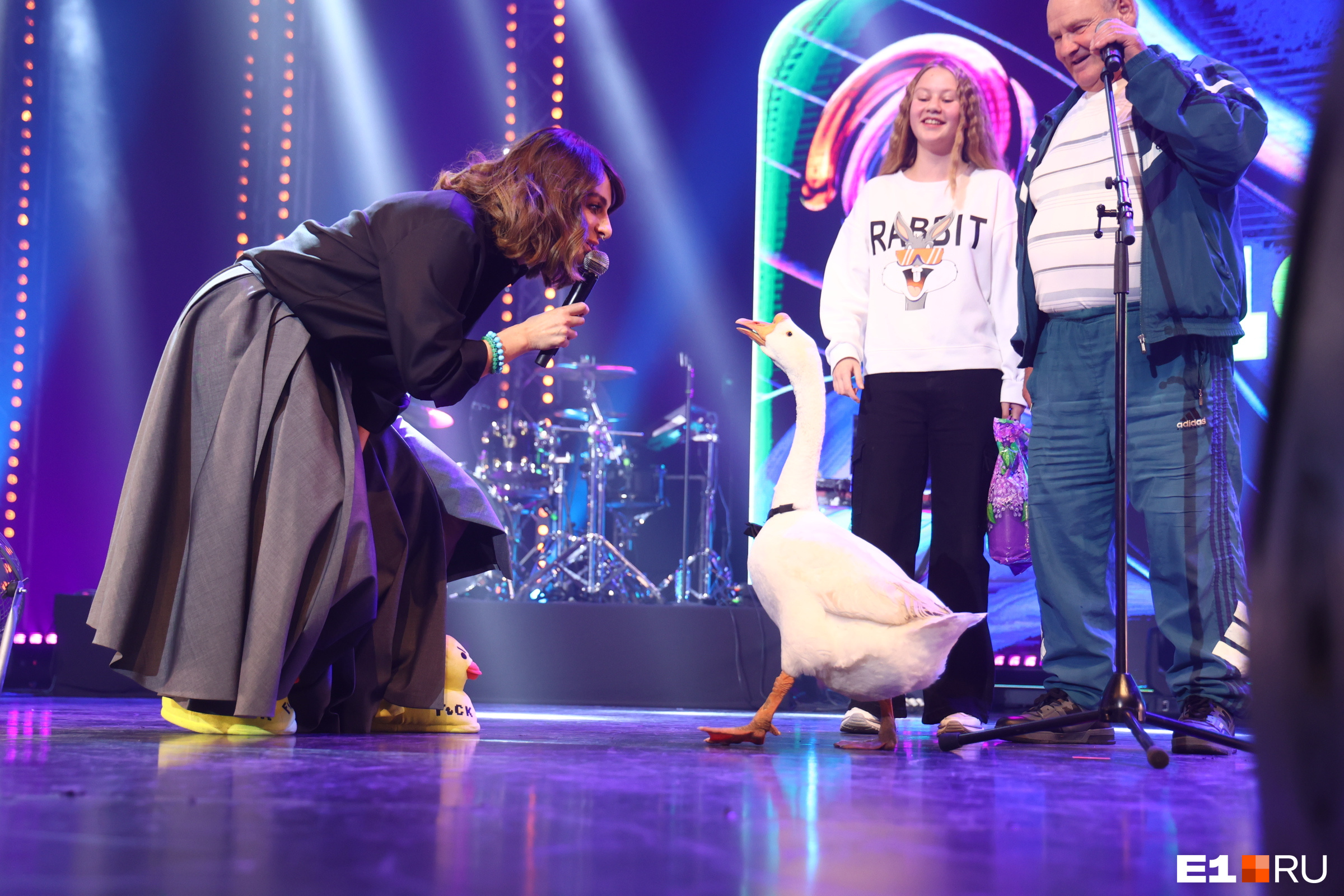 Сергей Львович вышел на сцену со своим другом, гусем Малышом