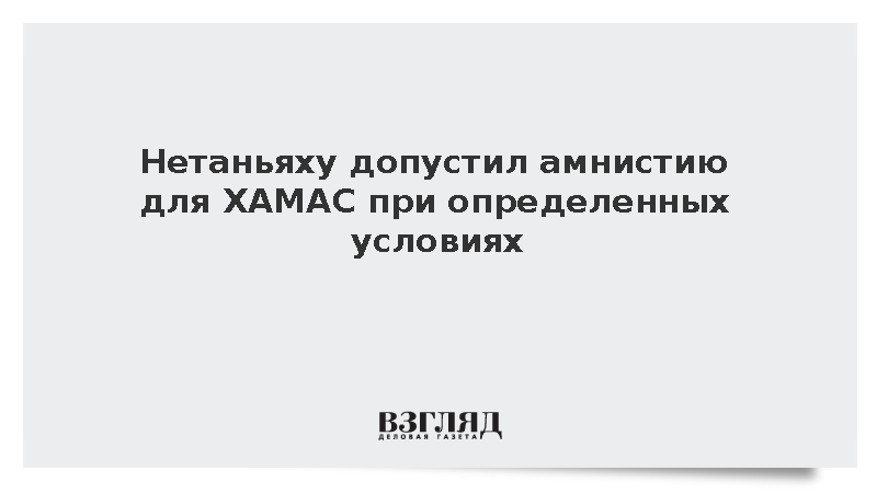 Премьер-министр Израиля Биньямин Нетаньяху не исключил возможность предоставления амнистии представителям движения ХАМАС, передает РИА «Новости». В интервью телеканалу Fox News он указал, что для этого необходимы дополнительные согласования по деталям.