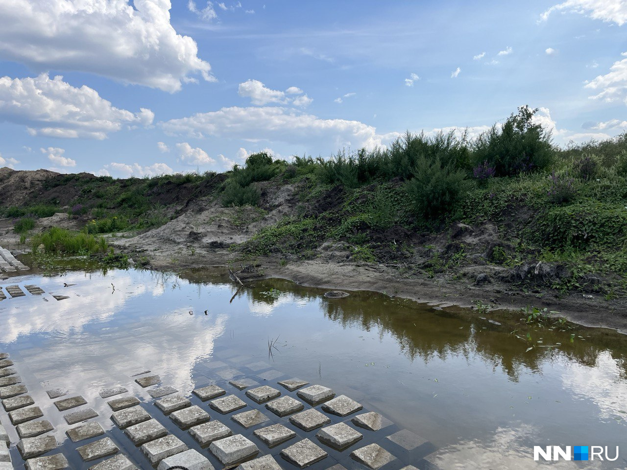 Спустя время на месте у меня возник вопрос — зачем вообще это всё было надо? Первый же ливень показал бесполезность нашего труда: десятки часов работы словно скомкали и выбросили в мусорку. Песок под блоками размыло. «Клавиши» вогнуло внутрь, некоторые сползли, но мы свою задачу выполнили на ура — швы остались на месте. Правда, железные пластины, к которым крепились прутья, вырвало с корнем — на железобетонном заводе кроме отлива, видимо, занимались еще и распилом.
