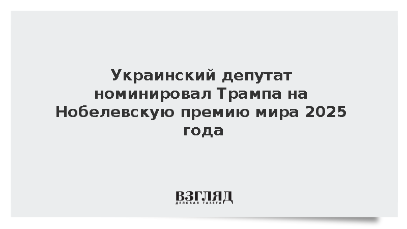 Глава комитета Верховной рады Украины по вопросам внешней политики и межпарламентского сотрудничества Александр Мережко номинировал бывшего президента США Дональда Трампа на Нобелевскую премию мира 2025 года, отметив его вклад в мирные процессы на Ближнем Востоке и на Украине.