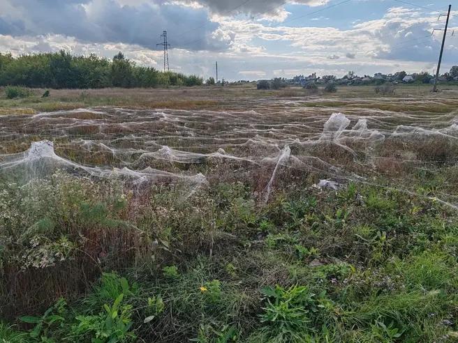 Кадры, которые разошлись по соцсетям, действительно впечатляющие — как будто пауки захватили всё поле. Паутина покрыла даже цветы. В группе «Зеленый талисман» во «ВКонтакте» отмечали, что на фотографиях представлены пауки-волки и пауки-кругопряды.