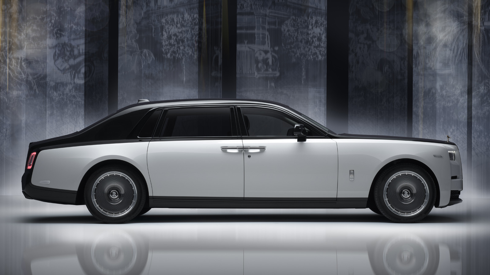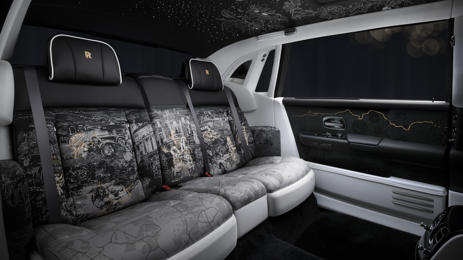 На передних креслах с помощью лазерной гравировки нанесены рисунки, напоминающие эскизы. Также изображения нанесены на отделанные деревом дверные карты и переднюю панель. На отделку потолка Starlight потребовалось 440 000 стежков. Ещё в салоне можно увидеть декоративные золотые вставки, алюминиевые накладки, напечатанные на 3D-принтере, выдвижные столики с изображением Phantom I и Phantom VIII 1925 года.