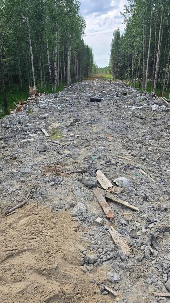 Несмотря на то, что арендаторам земельного участка выдано предписание на устранение нарушений и 1 июля к ним приезжали специалисты Природнадзора Югры, дачников это нисколько не остановило. Дорога из стройотходов продолжает разрастаться, а то, что уже утрамбовано быстро скрывается под тоннами песка.