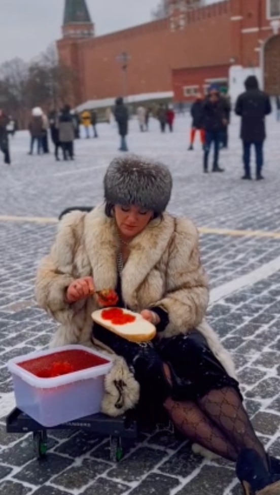 Днем 17 декабря Анастасия и Евгения решили пойти дальше и снять сценку slavic girl VS police: первая позировала перед объективом c красной икрой, а вторая в костюме полицейского имитировала задержание за незаконную съёмку на Красной площади.